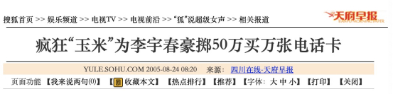 2005年超级女声热播时期出现的“粉丝为投票狂掷数万甚至几十万买电话卡”新闻