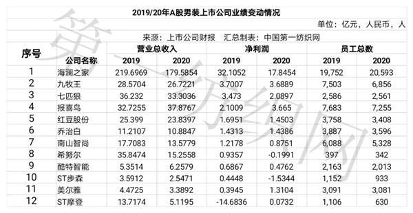 随着2020年年报的披露结束,沪深A股男装企业交出疫情之后的年度成绩单,而在疫情冲击下的大环境下,本土男装行业的生存尤为不易。