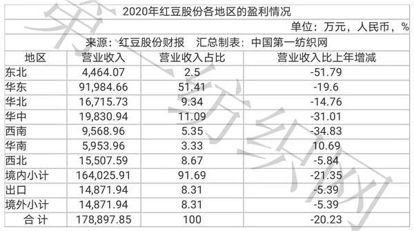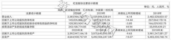 财报显示,2020年,红豆股份实现营业收入23.8亿,同比下降6.1%;实现归属于母公司所有者净利润1.5亿元,同比下降14.4%,降幅较去年同期收窄。