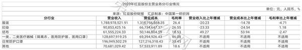 从业务结构来看,服装板块是红豆股份营业收入的主要来源,报告期内,服装板块贡献营业收入17.9亿,营收占比为76.5%,毛利率为26.4%。