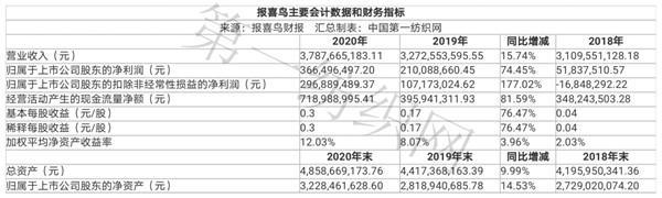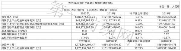 位居净利润第六位的乔治白,2020年实现营业收入10.9亿元,同比下降2.9%;实现归属于母公司所有者净利润1.4亿元,同比增长0.5%。