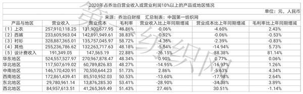 从销售区域看,华东地区仍是其市场销售重中之重,报告期内,实现营业收入5.25亿元,占比达48.19%,较2019年再提升1.87%。其次,市场增幅较大的是西北地区,报告期内实现收入0.85亿元,占比由2019年5.95%提升到2020年的7.8%。再次,是中南地区,报告期内实现收入1.46亿元,同比提升0.75%。