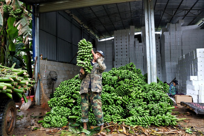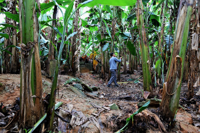 自从小米蕉大火后,不少村民都过上了早上砍蕉白天打包的“双工种”生活,一天满工时的收入接近300元。(摄影:安舜)