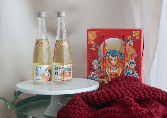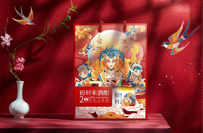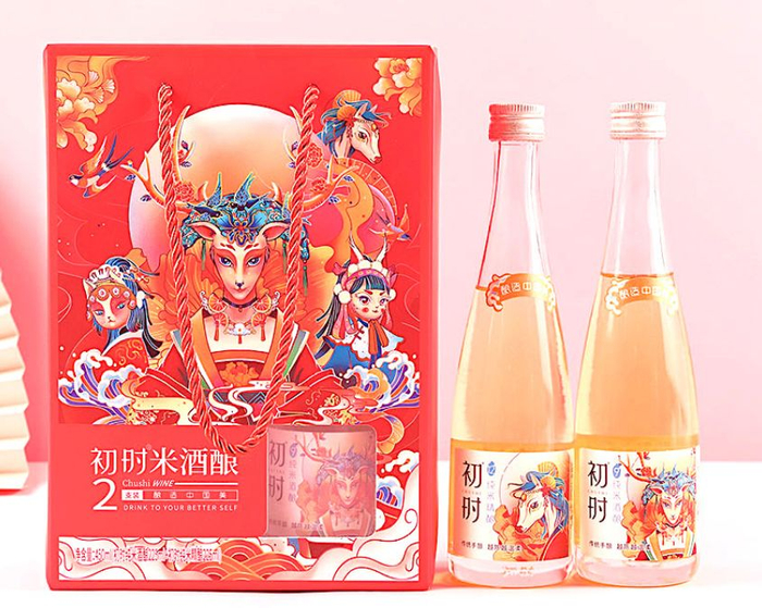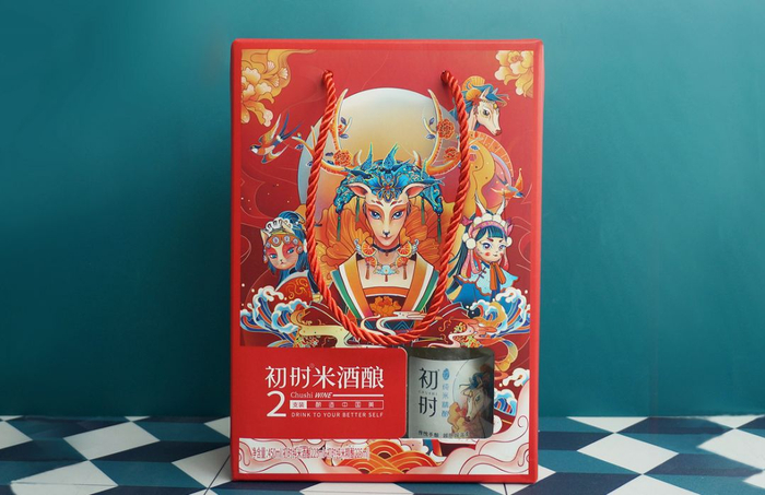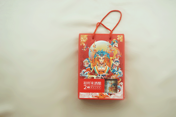 “初时”邀请独立设计师,推出的这款国潮米酒礼盒装。