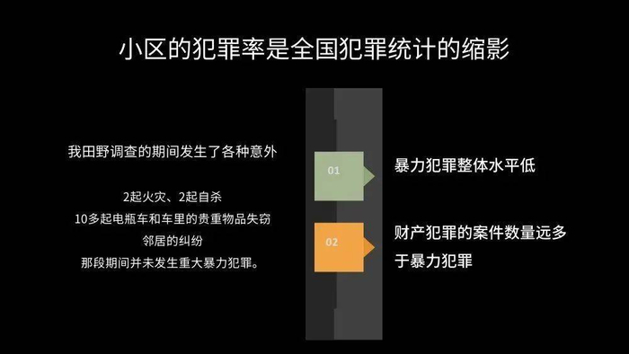 这两个小区中的犯罪率,其实是符合全国犯罪统计的:1.暴力犯罪整体的水平很低;2.财产犯罪的案件数量多于暴力犯罪。