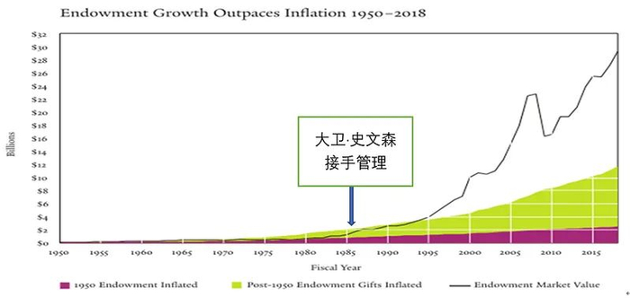 大卫·史文森初接手时,耶鲁大学捐赠基金只有13亿美元,截至2020年6月30日,基金规模达到312亿美元。耶鲁大学捐赠基金是美国表现最好的大型机构投资者之一。在截至2020年6月的10年间,耶鲁基金产生了10.9%的年回报率,在八所常春藤盟校中排名第一,在过去20年里,耶鲁大学捐赠基金的年回报率为9.9%。