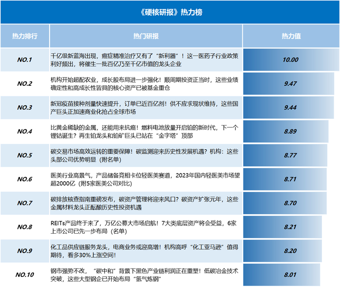 【《硬核研报》热力榜】