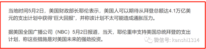大家可以想一下,如果美元不是世界货币,这么快速的印钱,美元现在会是什么样子?正是由于疯狂的给民众打钱,以及疯狂的向中国采购医疗物资等,才使得美国没有被疫情击溃。更神奇的是,美国财政部长耶伦直言不讳:美国人可以期待从拜登总额达4.1万亿美元的支出计划中获得“巨大回报”,该计划不太可能造成通胀压力。说实在的,看到这句话,我都想骂人,看看全球物价的上涨,还大言不惭的说,不太可能造成通胀压力,晕!