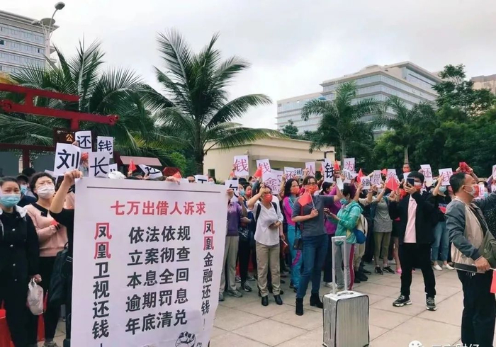 长久地等待并没有拿到回款,投资者们开始集体维权,打出“凤凰卫视还钱,凤凰金融还钱”的条幅。