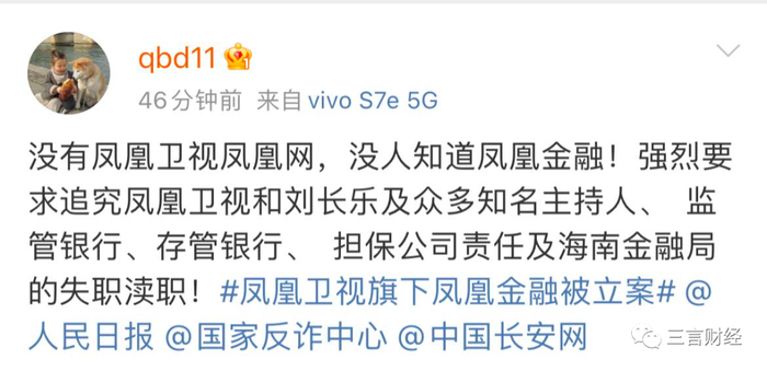 不过对于凤凰金融的上述说法显然投资者是不认可的,当初不少人正是看到凤凰卫视背书才购买的。