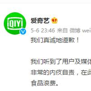 5月6日夜间,爱奇艺发文道歉,称对于“倒奶视频”所造成的影响表达歉意,同时重申坚决反对一切形式的食品浪费。爱奇艺称,从发文即刻起,关闭《青春有你》第三季所有助力通道。