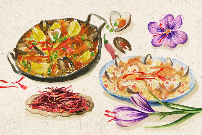 作为食材,藏红花也出现在西班牙海鲜饭、意式烩饭中