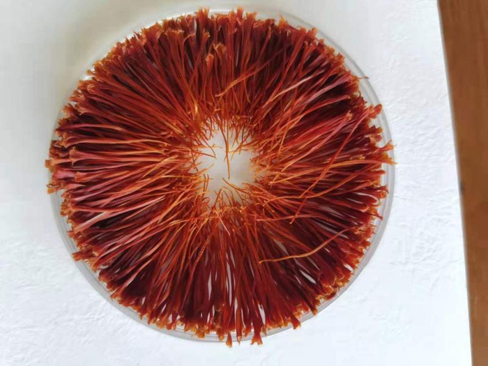 品质好的藏红花烘干后颜色艳、柱头长且直