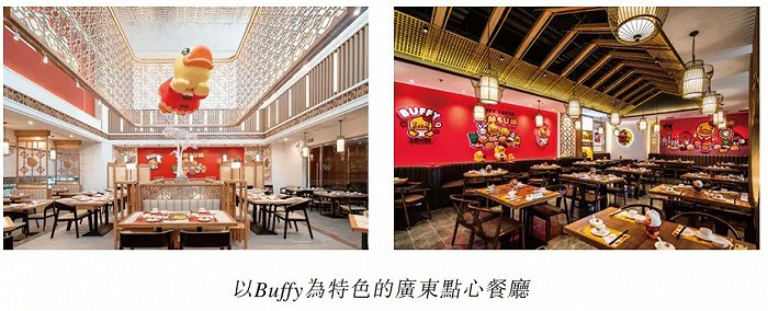 截至2020年末,德盈已经在北京、上海、苏州、重庆等地授权开设20家以Buffy为特色的广东点心餐厅,计划与食为先合作于2022年前新开16家;还有已经授权开设超过140家小黄鸭奶茶店-德盈称之为以B.Duck为特色的现代茶馆(与至潮品牌合作)。