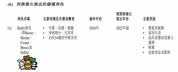 德盈2017年推出了面向女性的Buffy和面向婴童市场的小黄鸭Baby,预计在2020年推出的其他储备新角色还有Buffy的朋友们(Butter、Mocha、Cream、Mose及DaDa)。