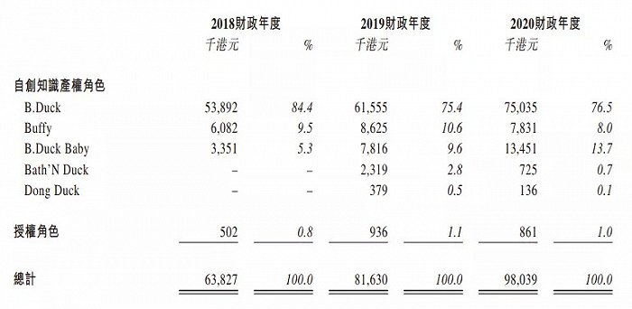 2020年度,德盈通过B.Duck获得的授权收益从2018年的5389.2万港元增长到7503.5万港元;Buffy的收益从2018年的608.2万港元增长到783.1万港元,B.Duck Baby的收益从335.1万港元增长到1345.1万港元,DongDuck的授权收入有13.6万港元,Bath’N Duck的授权收入有72.5万港元。