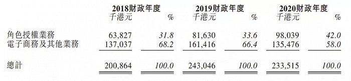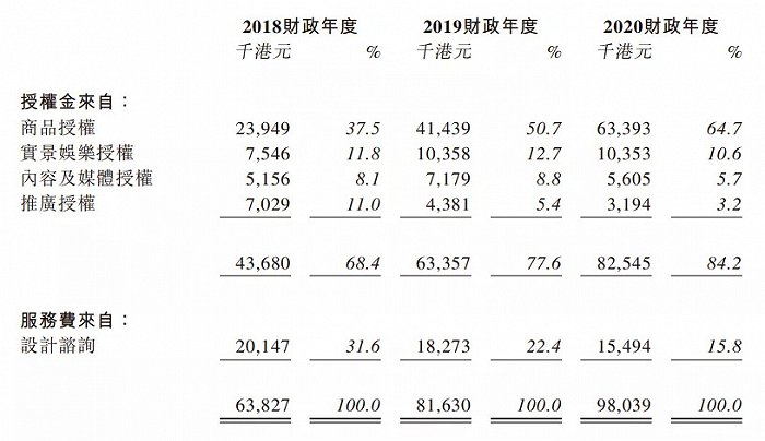 2018-2020三个年度,德盈的角色授权业务收入分别为6382.7万、8163万、9803.9万港元。
