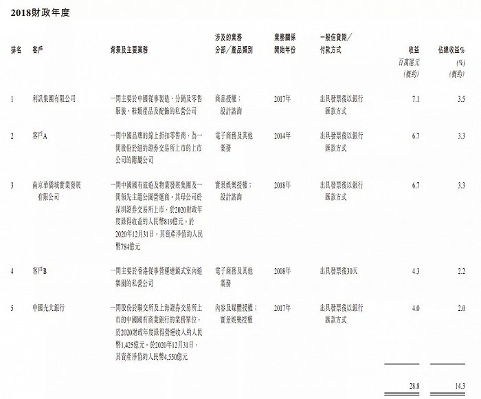 德盈国际此前招股书披露的2017年前五大客户