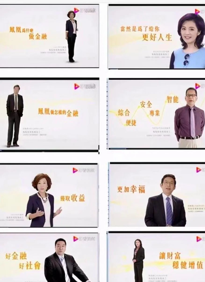 此外,在此前的凤凰金融官网中有一则宣传视频,凤凰卫视多位主持人出镜背书,包括卢琛、许戈辉、何亮亮、石齐平、郑浩、尉迟琳嘉、吴小莉等。