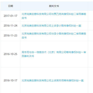 在和明星的肖像权诉争中,北京完美公司多次被判败诉、赔偿。2020年7月,北京完美公司被判赔偿刘诗施经济损失13万元,并在公众号连续10日刊登致歉声明;2020年9月,完美创意公司被判赔偿吴静怡合计超20万元。