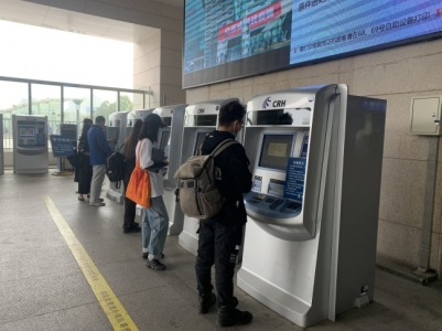 5月7日上午,成都东站西广场第一售票厅,不少旅客正在自助售票机前排队买票。成都车站设备科科长赖雨介绍,10年间,成都东站的自助售票机从最初的25台增长到现在的150台,充分满足了旅客的购票、取票需求。