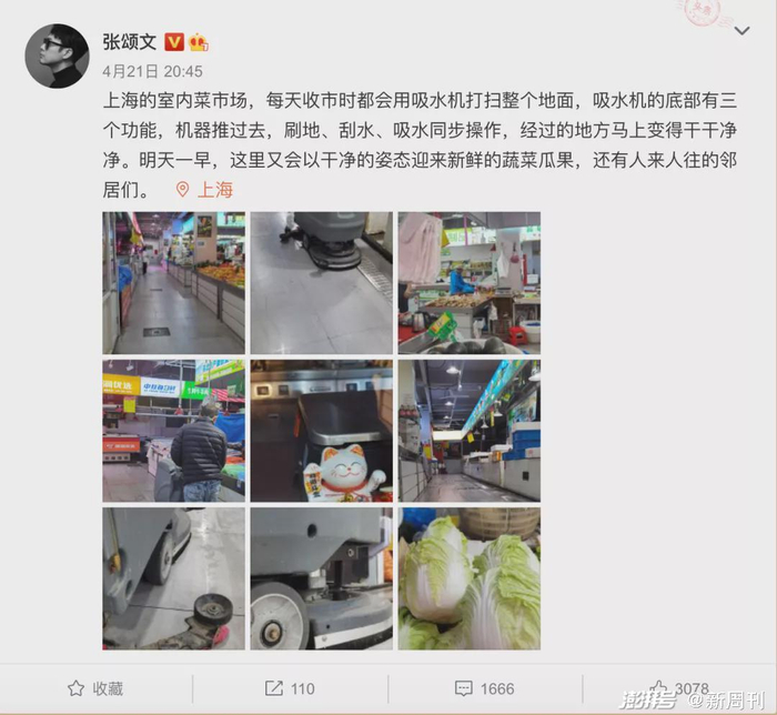 张颂文的微博里,最常见的主角是菜场。