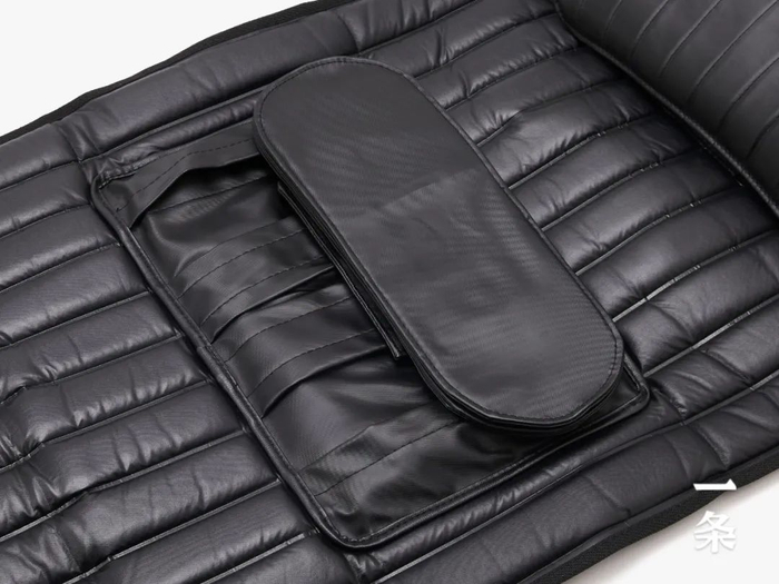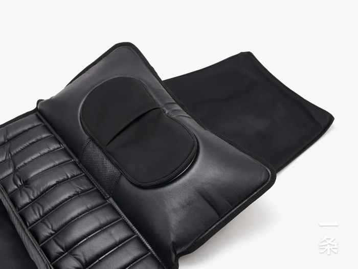 按摩垫的主要部分材质是皮革,看起来就很高档,躺在上面也很舒适。