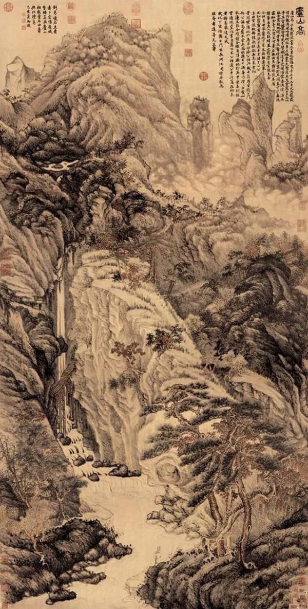 沈周(1427-1509):《庐山高》(1467)。挂轴,纸本设色,193.8cm×98.1cm。台北故宫博物院藏