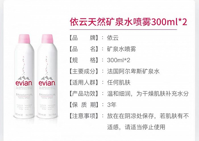 以依云为例,内容物同样是法国阿尔卑斯矿泉水,300ml的依云喷雾售价是86,相当于24瓶330ml规格依云矿泉水的价格。