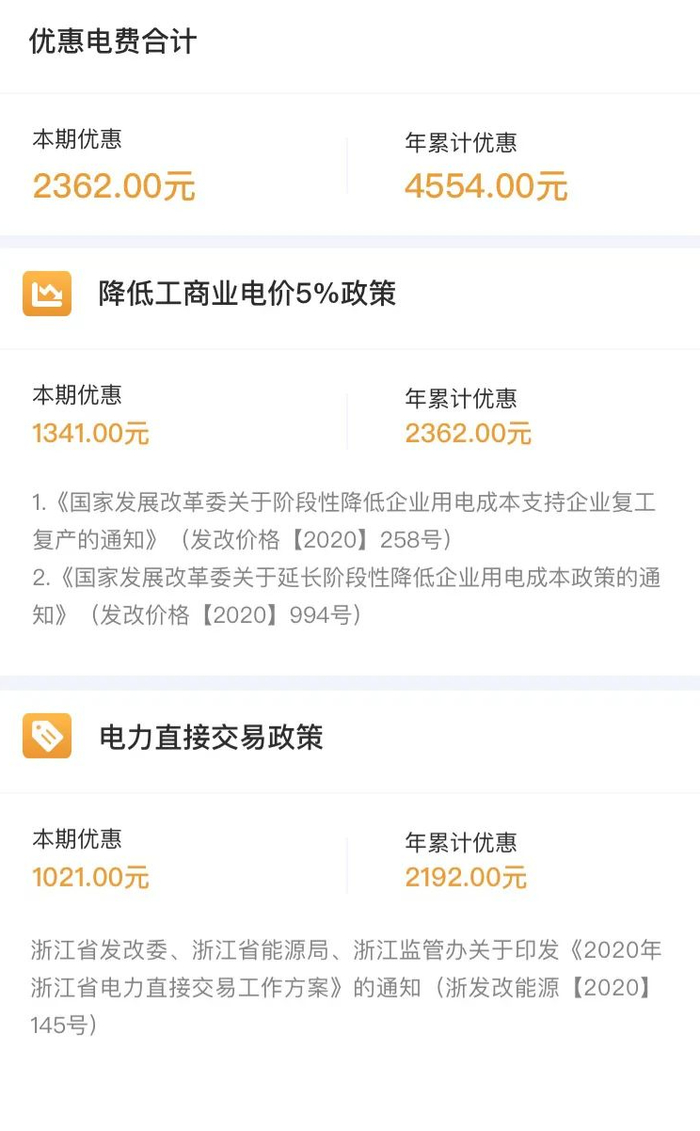企业可以查询到当月可享受的各类优惠政策及优惠的电费金额,从而更有针对性地利用优惠政策节省电费。