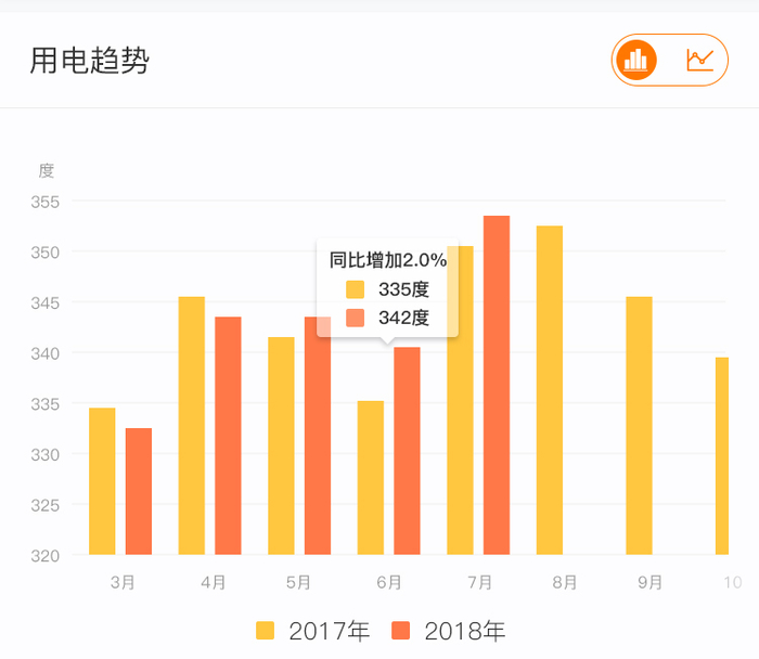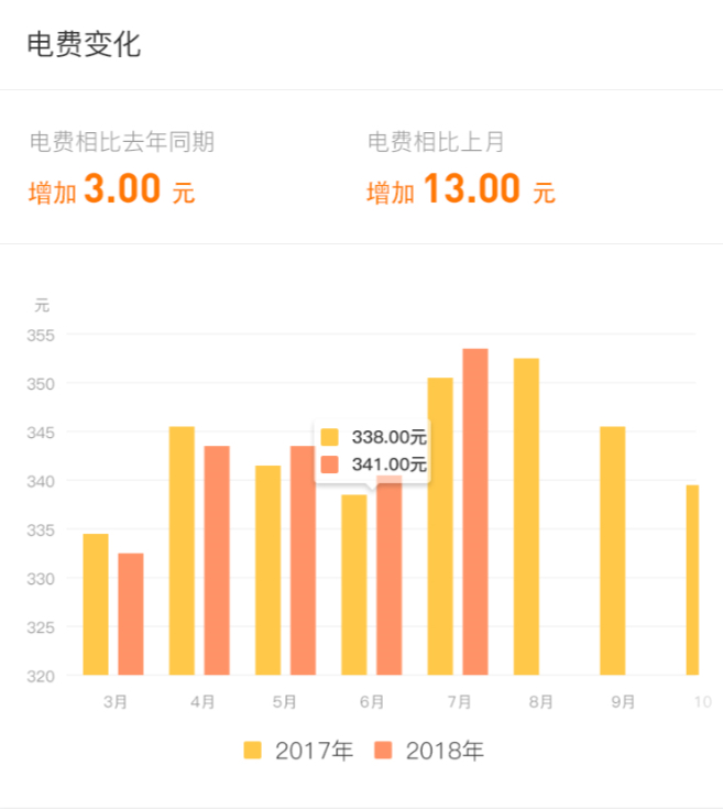 客户可以查询店铺近两年的电费对比情况。
