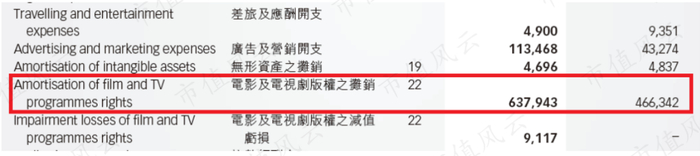 公司营业成本的最主要组成部分是电影及电视剧版权的摊销。
