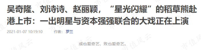 风云君曾经写过一篇有关稻草熊娱乐(02125.HK)的研究报告,即《吴奇隆、刘诗诗、赵丽颖,“星光闪耀”的稻草熊赴港上市:一出明星与资本强强联合的大戏正在上演》。(下载市值风云APP,搜索关键字,即可阅读全文内容。)