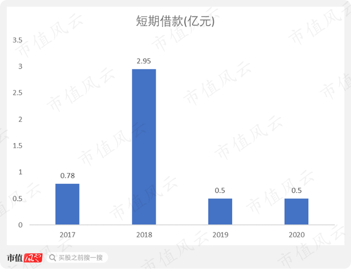 欢喜传媒的短期借款从2017年的0.78亿元增长至2018年的2.95亿元,后下降至2019年的0.5亿元,2020年的短期借款也只有0.5亿元。