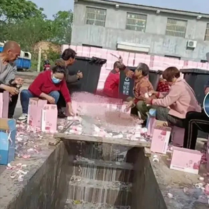 视频里,数十名工人拆开一箱箱牛奶,把牛奶倒在水沟里,只留下了牛奶瓶的瓶盖。