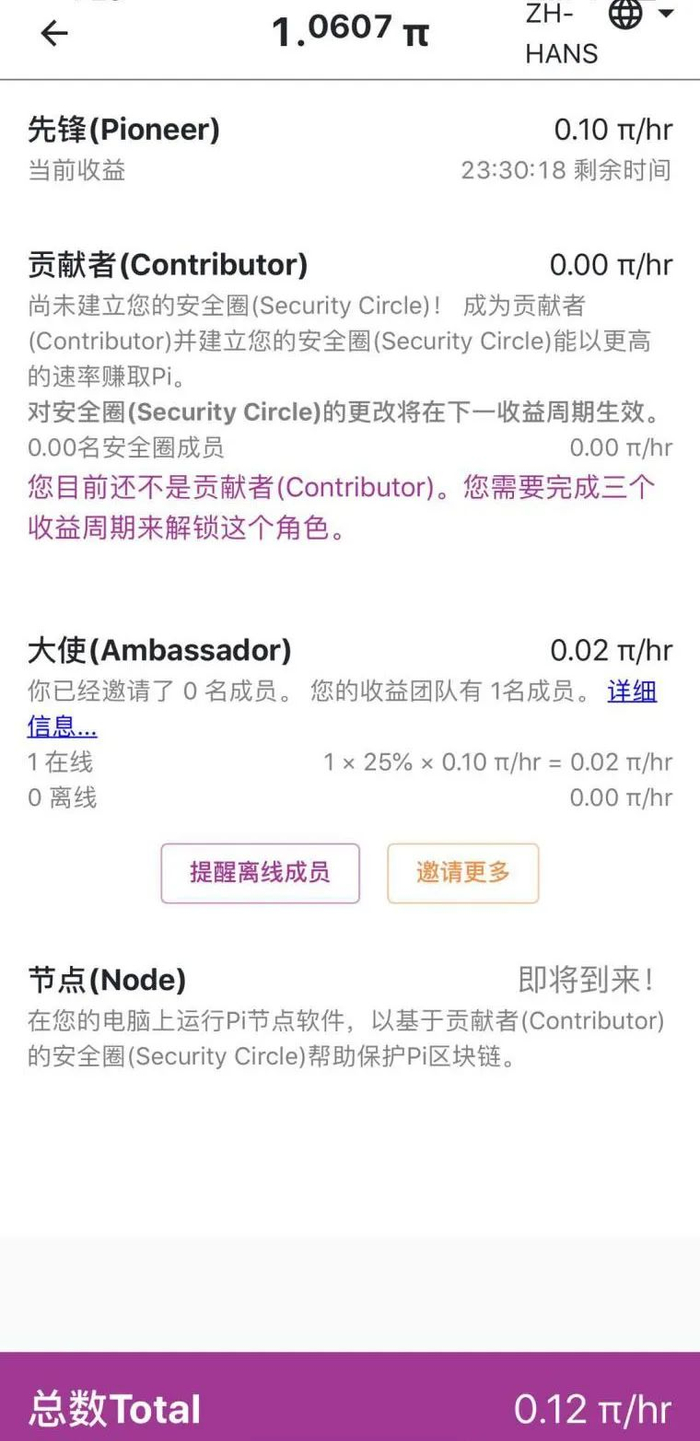 从派币的挖币模式看,确实有“拉人头”嫌疑。用户邀请的人越多,活跃用户越多,挖矿速度就越快。比如一名用户邀请了10个人且都活跃,那么邀请奖励=10×25%×(基础速度+安全圈加成)。
