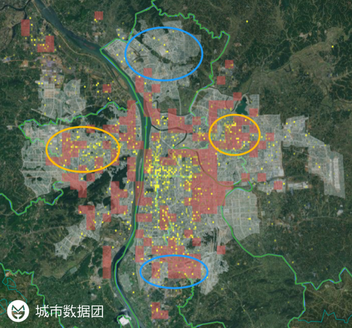 照旧,再叠加上常住人口的分布热力: