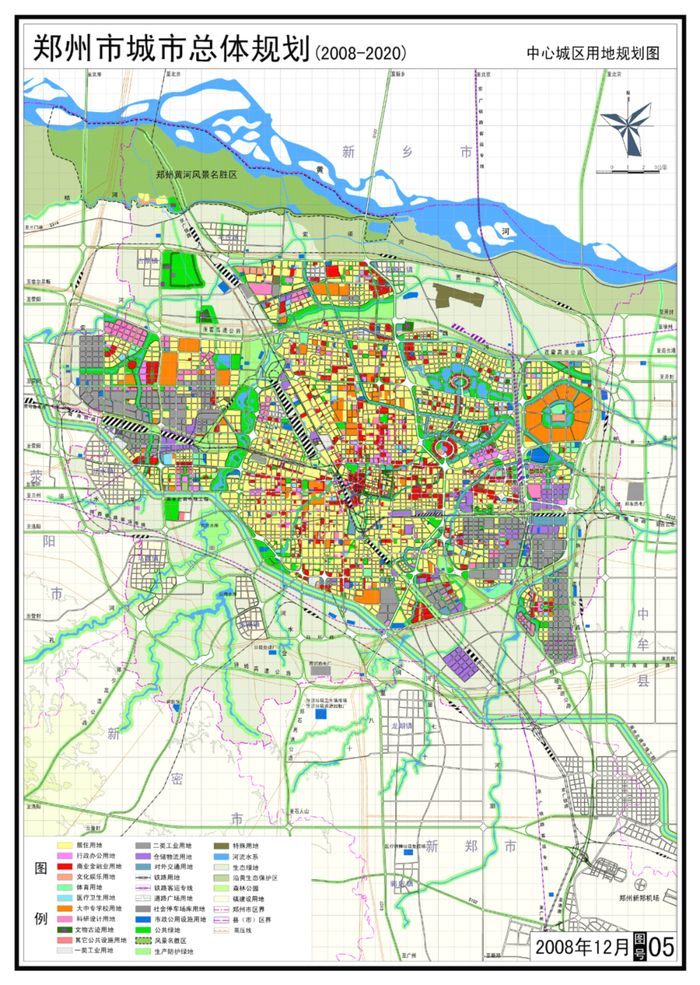 注:实际上,郑州的规划经过了多轮修订,甚至直到2017年仍在修订,网络公开来源的规划图版本繁杂,本文仅选取其中一个较为清晰的版本,希望能反映早期的规划意图。