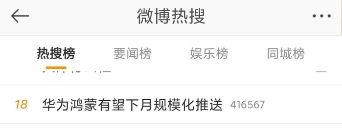 5月7日上午,“华为鸿蒙有望下月规模化推送”的话题登上新浪微博热搜榜,鸿蒙系统再次被置于聚光灯下。