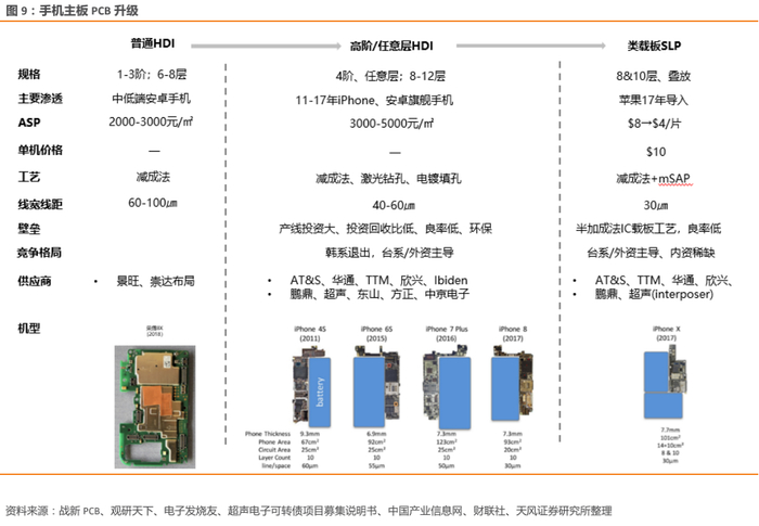 自主研发加码HDI,产品持续高端化。公司自主研发的多层高阶HDI项目已经能够量产6阶以上的超高布线密度HDI板,且公司上市募投建设高精密板项目,持续扩大HDI产能。高端HDI由于其高集成化、高密度互连的特性,可有效缩减布线空间,适用于电子产品轻薄化、高输性要求,已从单纯的互连器件成为了整个产品设计中的一个重要器件,将逐渐成为消费电子用PCB的主流,其产值比例不断增加。19年HDI在PCB板块产值占比15%。HDI目前主要应用在终端硬件的主板,预计未来持续朝着any layer和SLP发展,价值量和渗透率不断提升。
