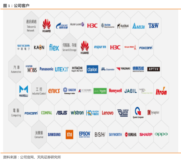 扎根硬板PCB业务,进入全方位发展阶段。公司于05年成立,主要产品为PCB硬板,产品层数以双面板和多层板为主,产品应用领域由最初的以消费类电子为主发展至目前的计算机、消费电子、通讯设备、汽车电子、工控设备以及医疗电子等领域。