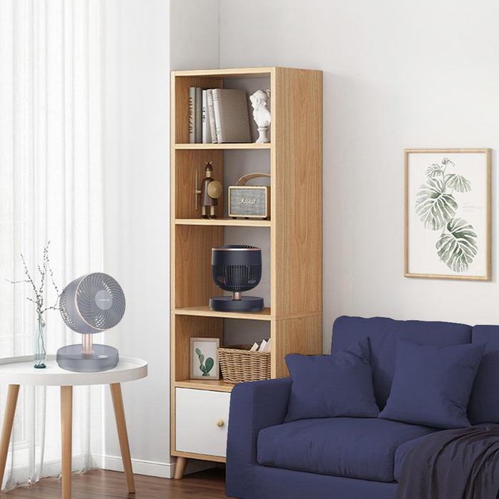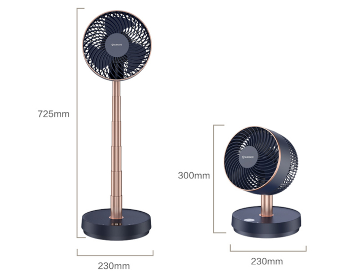 往上提拉可以变成立式风扇,上下90°调节,出风均匀,风量饱满。放在客厅或者房间地面都能够很好的送风。