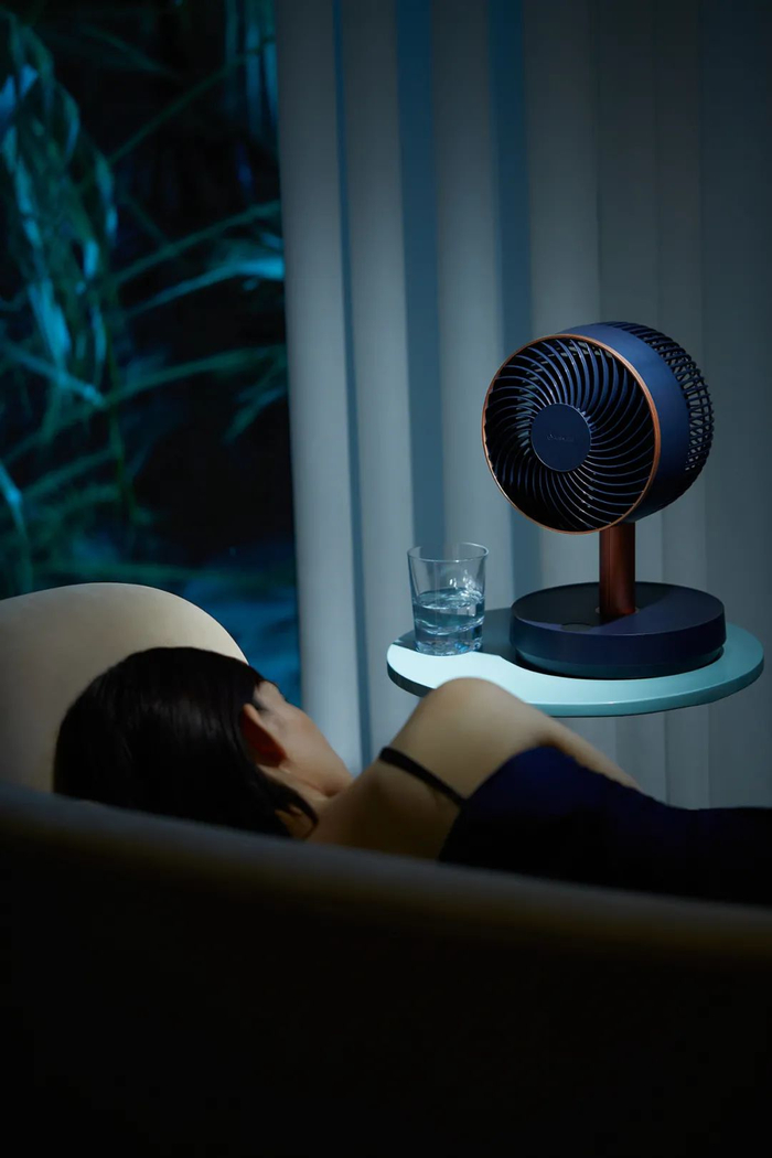 说到黑科技,就不得不提这款风扇的空气循环效果了。和传统风扇不同的是,它的扇叶做成了类似螺旋桨的效果,这样一来,它的送风效果也不再是传统的直吹风,而是旋转送风。