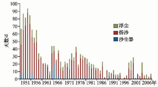 一项长期观察显示,1950年代,这一带发生强沙尘暴的频率约为每年5次,但在21世纪初这一频率已经变成30次;另一项研究则显示,1960年代每年约有20天发生沙尘暴,到1980年代已上升到50天,2010年代则进一步上涨到100天。