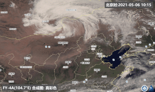 造成这新一轮北方沙尘的蒙古气旋照片。可以看出,这个气旋发育成熟,能量集中,体形完整标准