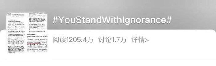 国内的玩家们也毫不示弱,号召大家在微博和推特上面发起一个叫做 #YouStandWithIgnorance(你支持的是无知)的话题,开始反击。