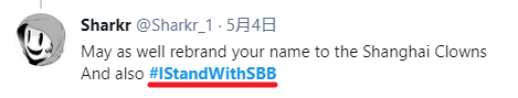 更加火上浇油的是,国外的网友开始凑起了热闹,在推特上面发起了一个叫做 #IStandWithSBB( 我支持 SBB )的话题,还把国内战队的声明视为一种道歉。