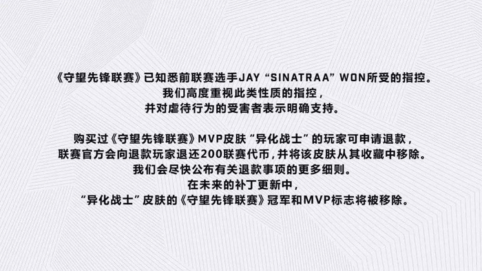 联赛很快就做出了回应,并表示已经购买了 MVP 皮肤的玩家可以退款,同时皮肤上面的 MVP 标志也会被移除。