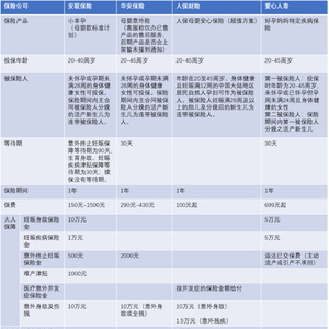 在大人和宝宝的其他医疗保障方面,各产品各有侧重。安联保险的小幸孕提供难产津贴,妊娠疾病和身故保障金,新生儿先天性畸形疾病津贴和手术补偿费;华安保险的母婴意外险提供新生儿并发症及损失保险金;人保母婴安心保险同时保障大人和新生儿并发症;爱心人寿的好孕妈妈特定疾病保险补偿妊娠疾病、身故保障金和新生儿重症住院和手术医疗保障金。