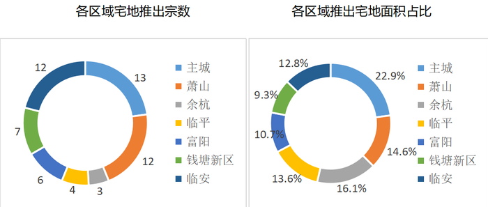 ▌区域分布上,主城供地超过余杭、萧山、临安